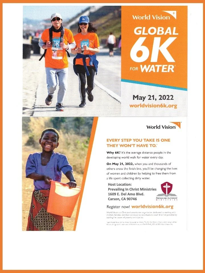 Join this awesome event to walk for a cause. Let’s be the feet of Jesus as we walk to support clean water in Ethiopia. Registration is Open Now!! Early Registration Discount by registering by April 10, 2022. Contact the office form more details act (310) 604-9939.