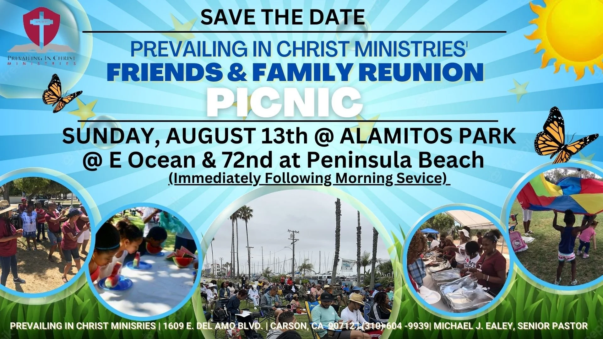 We invite you to Alamitos Park in Long Beach for our Bibles on the Beach Service at 9:45am. Immediately following service, we will have our Annual Friends and Family Reunion Picnic. So, bring your chairs and your Bible to join us for great fellowship, food, and fun!